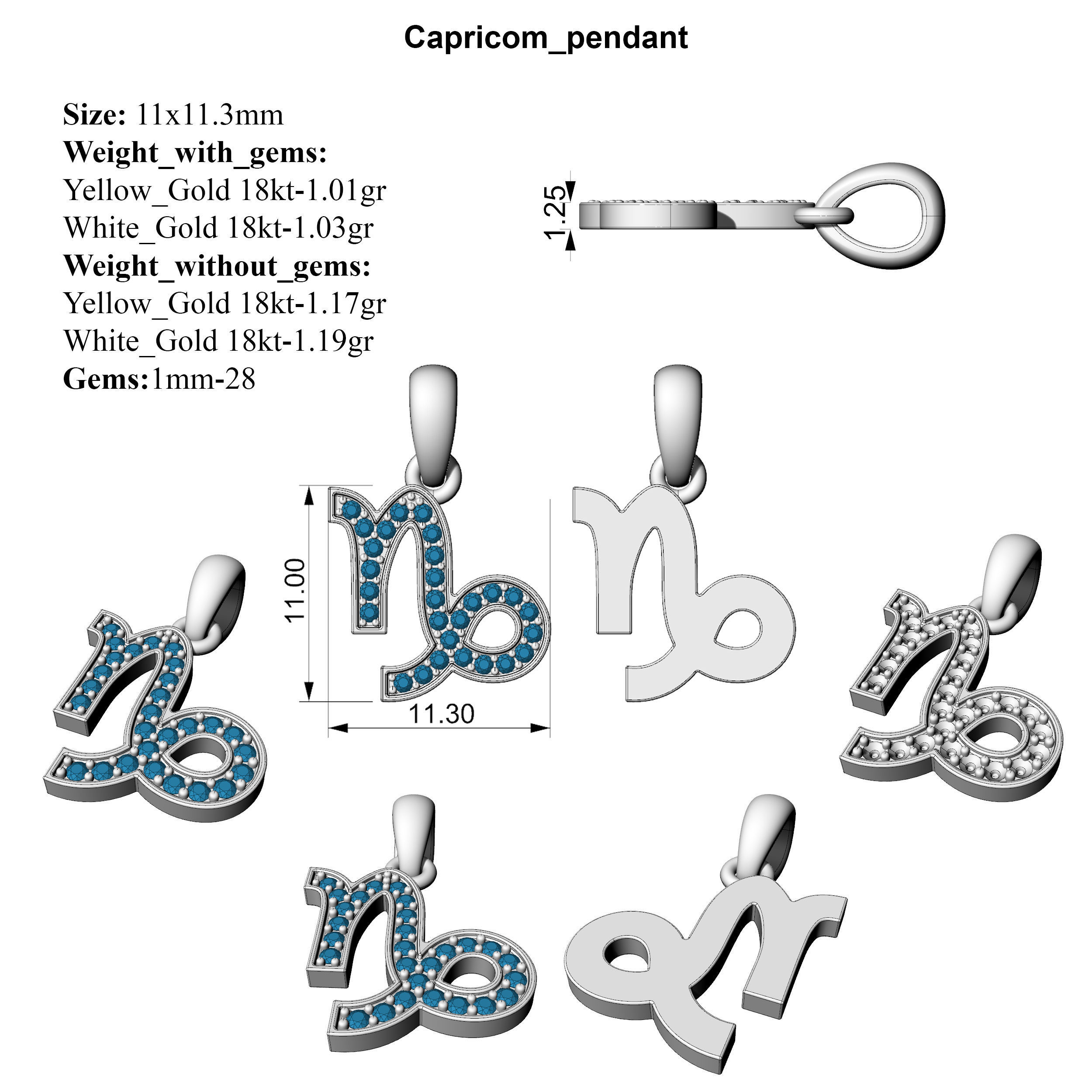 Размер: 11x11.3мм Вес_с_камнями: Желтое_Золото 750 проба-1.01гр Белое_Золото 750проба-1.03гр Вес_без камней: Желтое_Золото 750проба-1.17гр Белое_Золото 750проба-1.19гр Камни:1мм-28