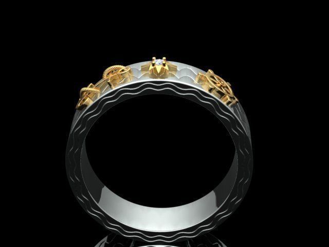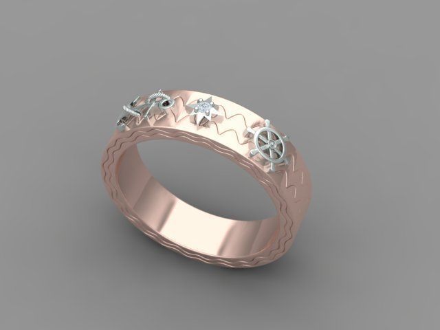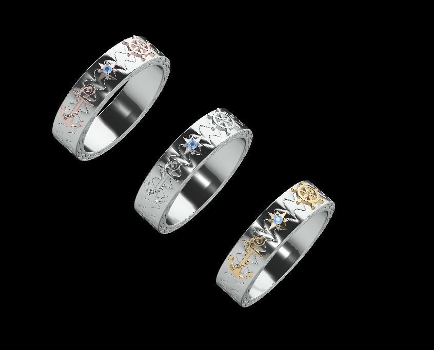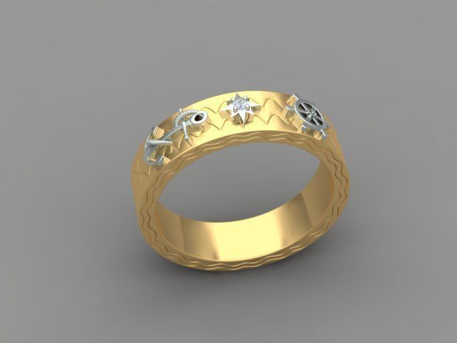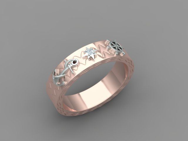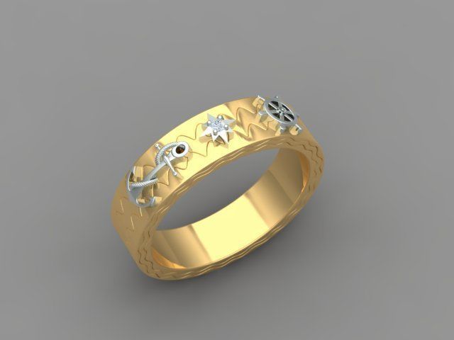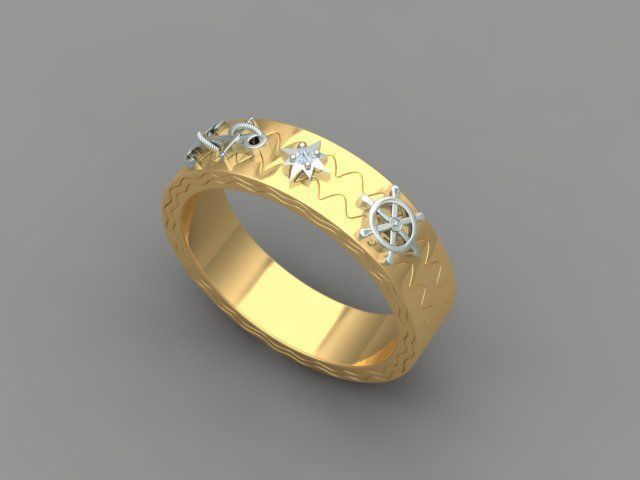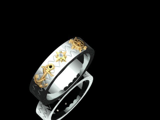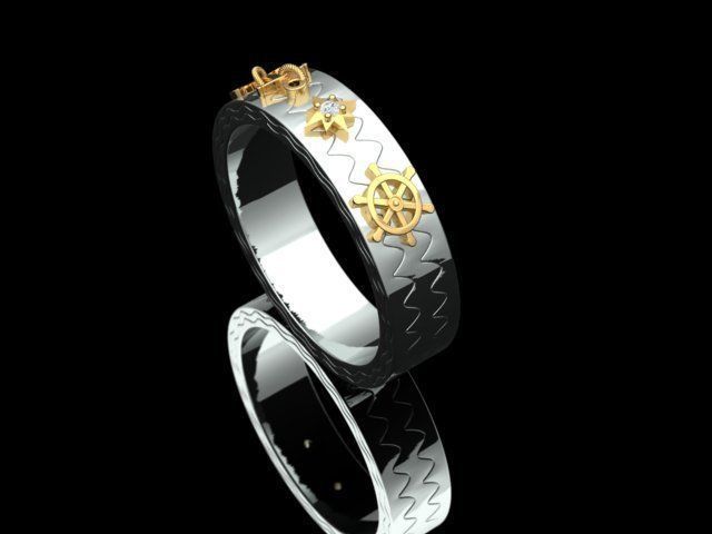 Кольцо ленточного типа, усыпанное бриллиантами для мужчин. Кольцо имеет дизайн якоря, дизайн рулевого колеса корабля. И круглый бриллиант размером 1,5 мм с 4 зубцами и структурой компаса. И общее кольцо напоминает Путешествие life.Размер кольца US 10 [20 мм]. Примерный вес кольца 11 грамм [585 проба] и 13 грамм [750 проба].