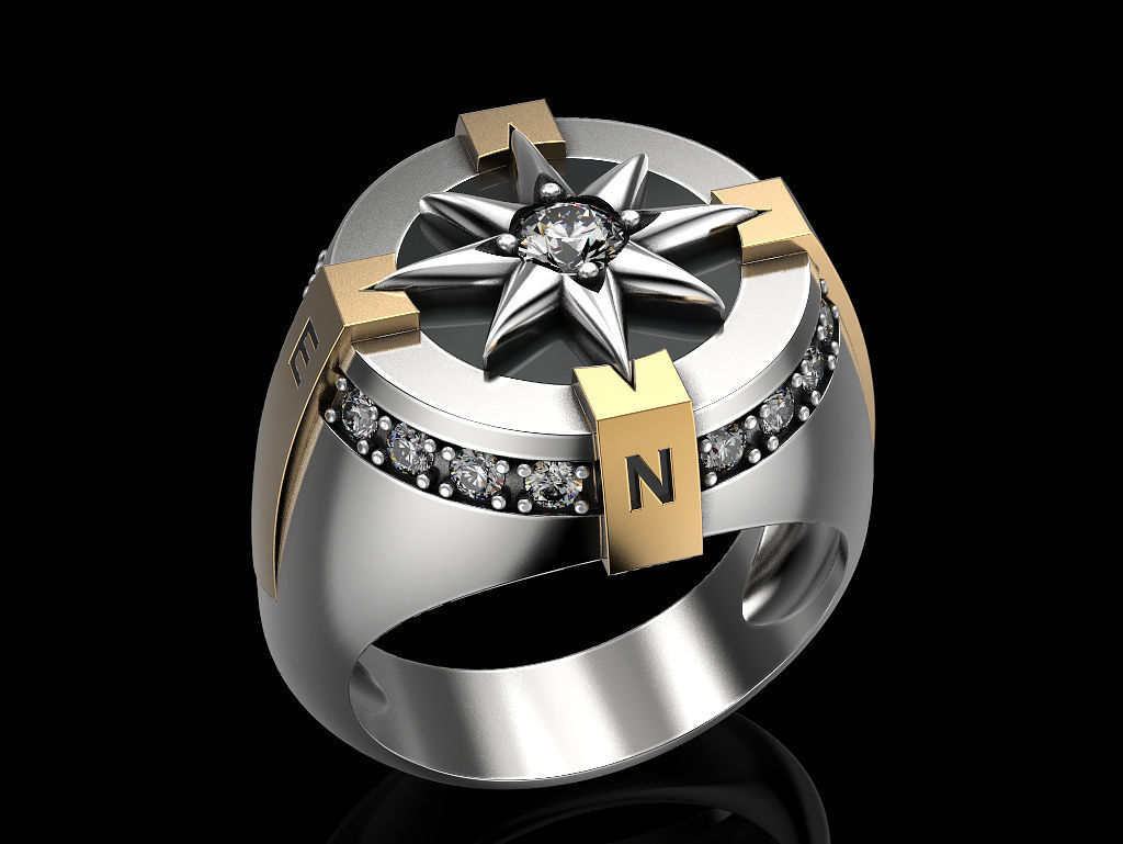 Кольцо с розой компаса 3D модель