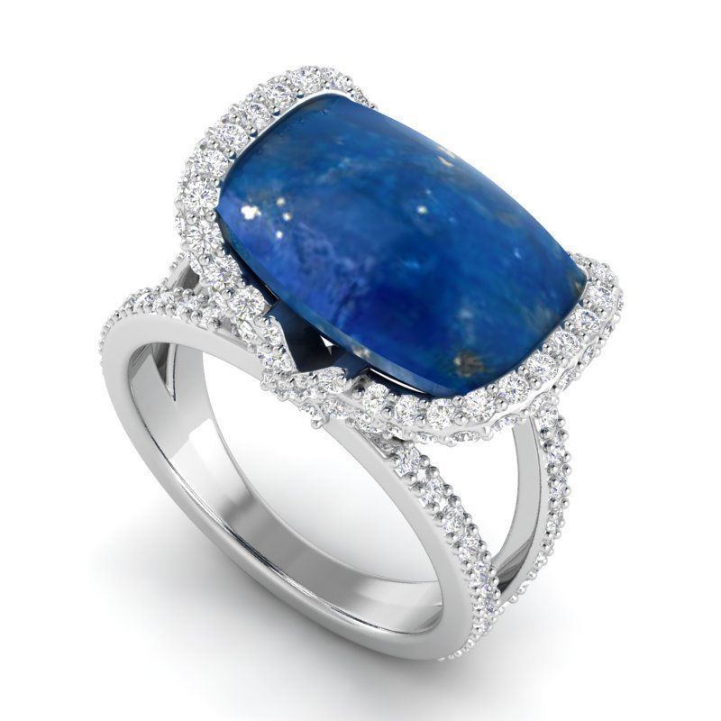 Помолвочное кольцо с большим голубым бриллиантом в центре 3D модель