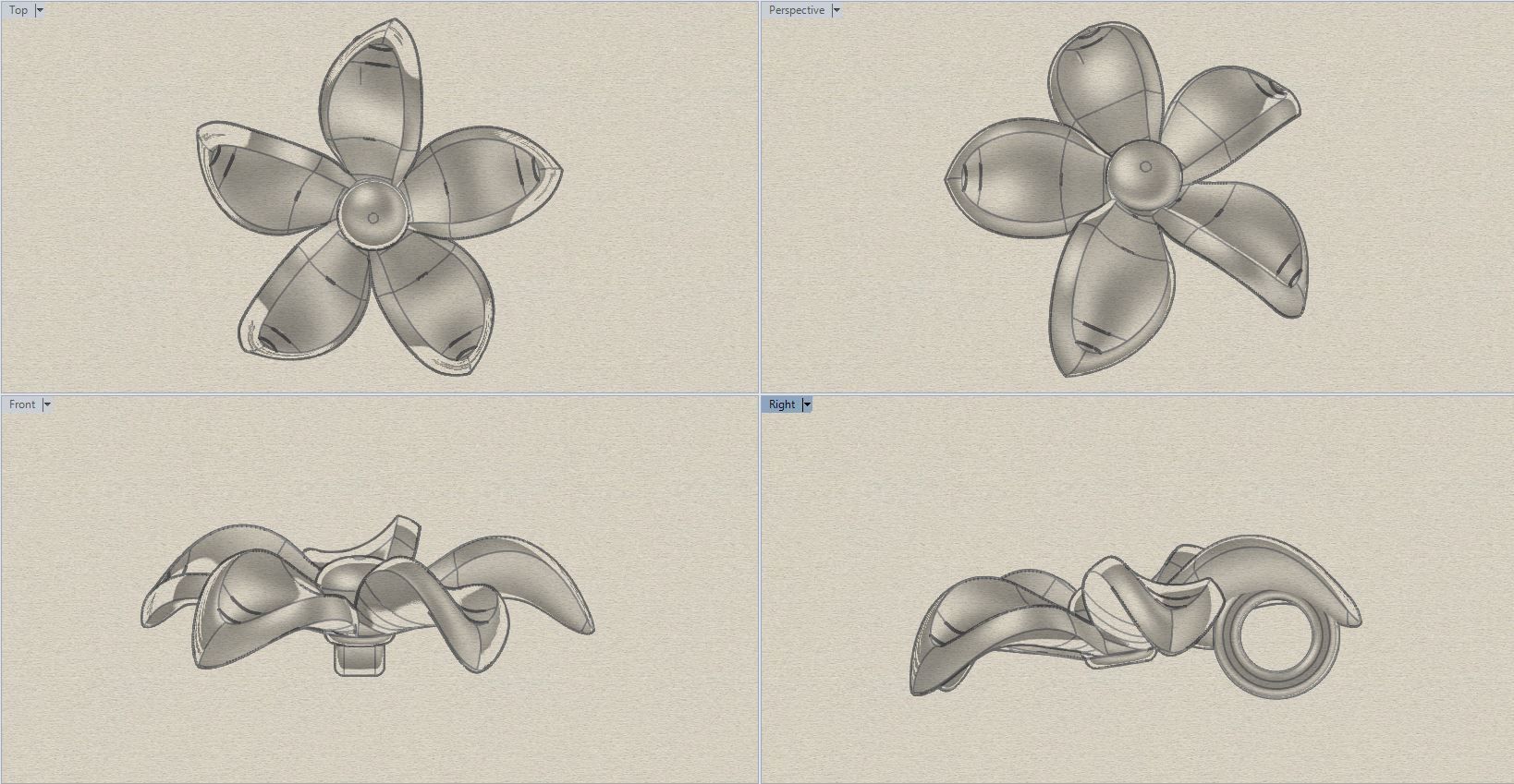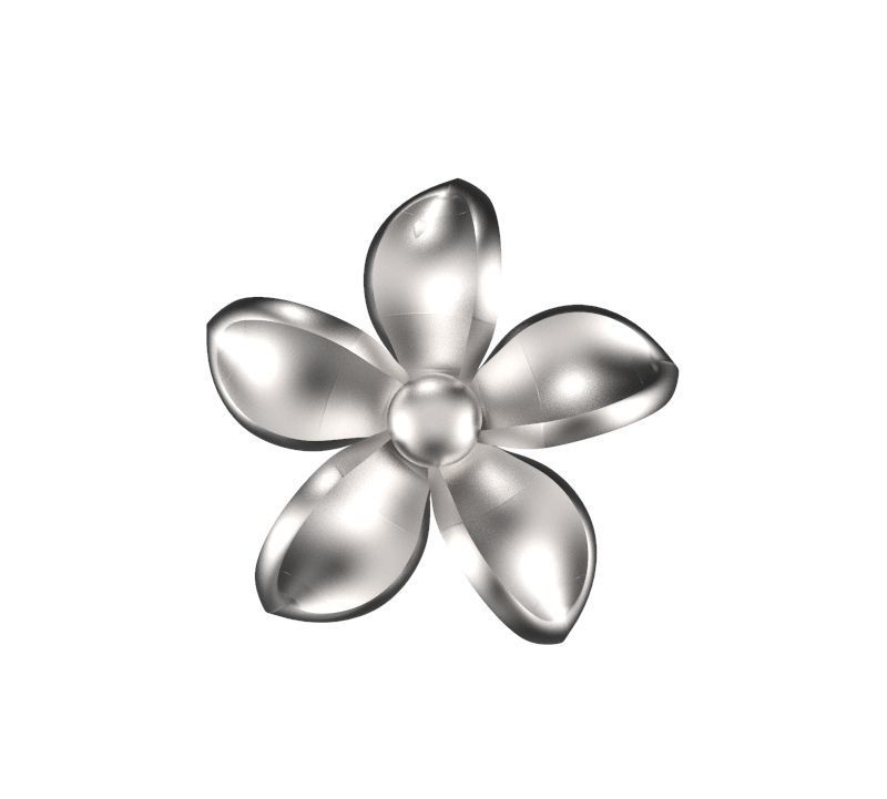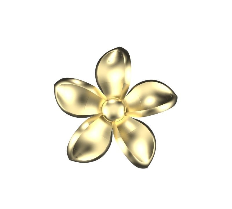 Очень красивая подвеска-цветок с 5 лепестками. Он круглый 17,6 мм и имеет высоту около 6 мм на груди. Цветок имеет фиксированное О-образное звено сзади с отверстием диаметром 3 мм. Лепестки достаточно толстые, чтобы вместить только мелкие камни. Объем печати составляет 233 мм, а ориентировочный вес: Сталь: 1,70 г Серебро: 2,30 г Золото 9К: 2,75 г 585 проба Золото: 3,00 г 750 проба Золото: 3,70 г