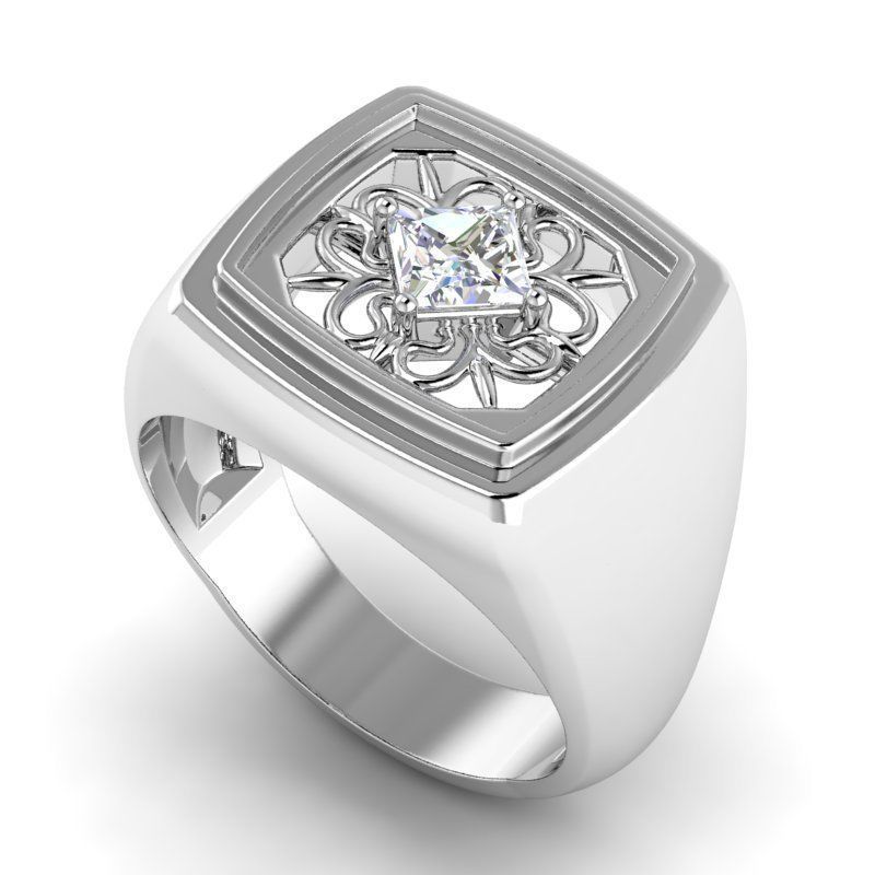 Помолвочное кольцо с цветочным дизайном и бриллиантом 3D модель