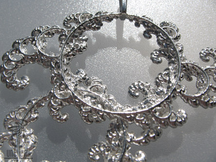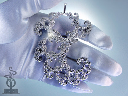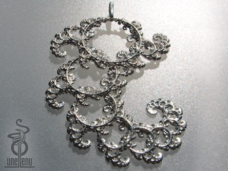Файл .stl для сложной подвески из фрактального кружева. Дизайн изображен здесь в стерлинговом серебре.