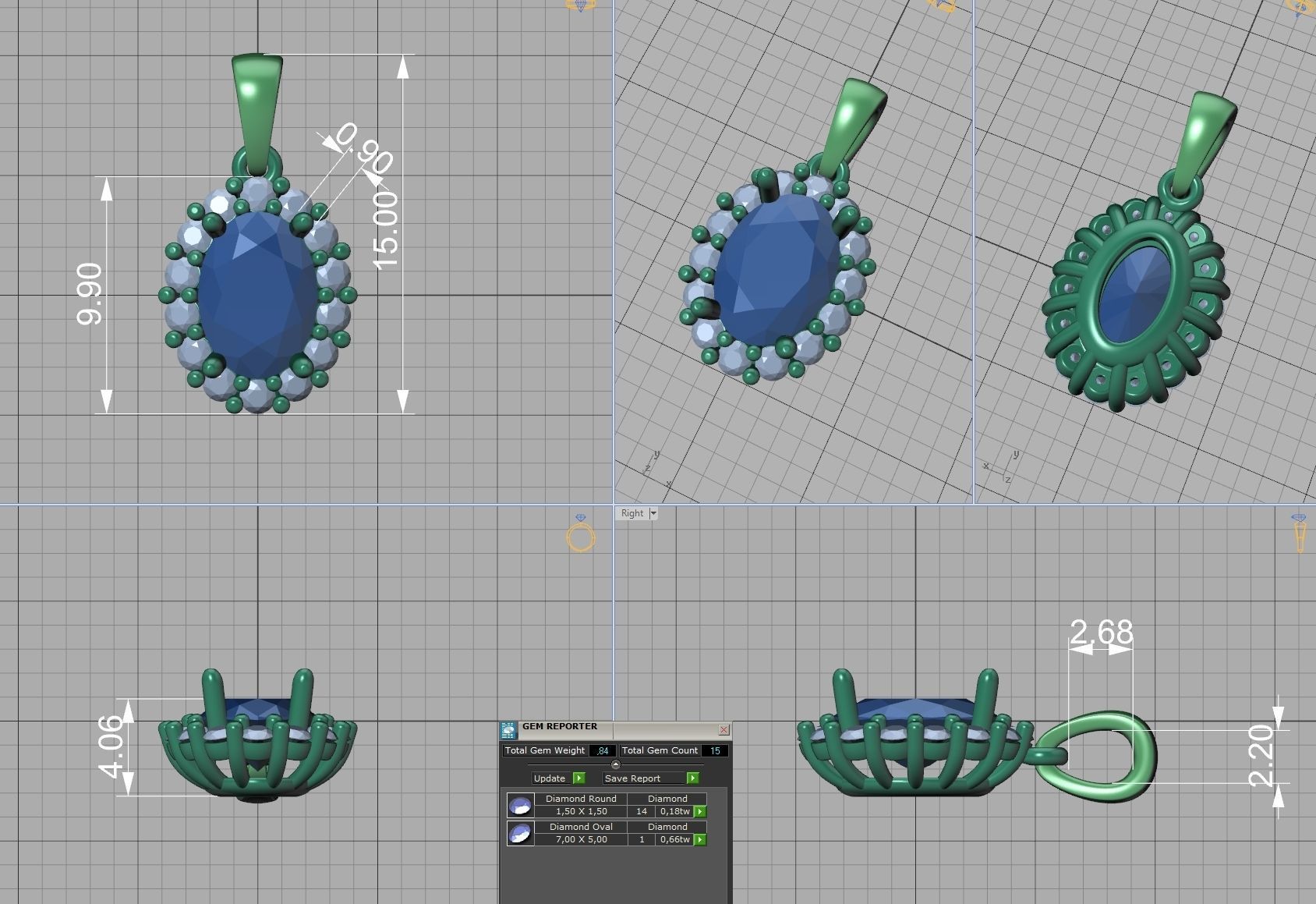 Овальный кулон Диана 7x5 драгоценный камень модель 3D модель