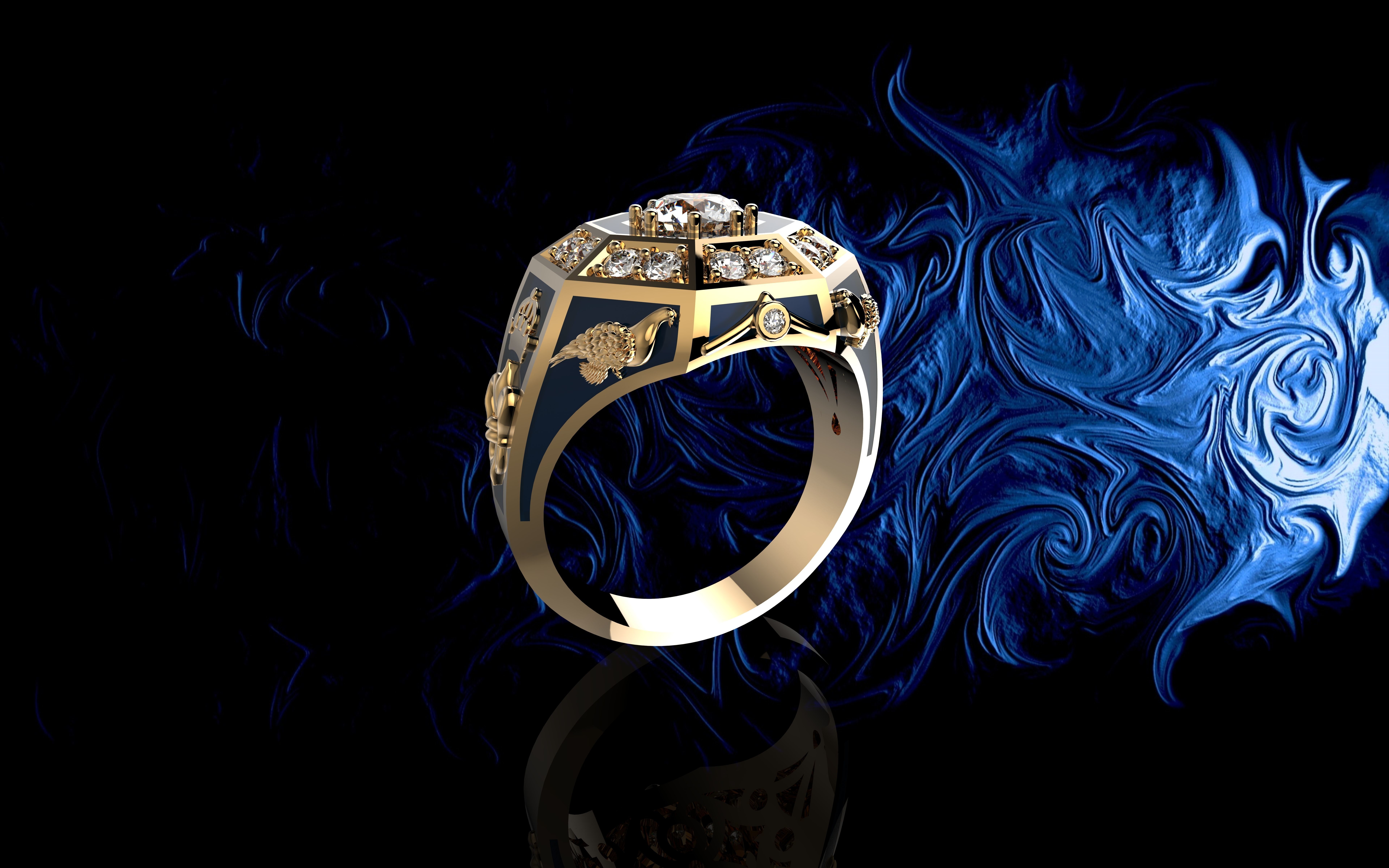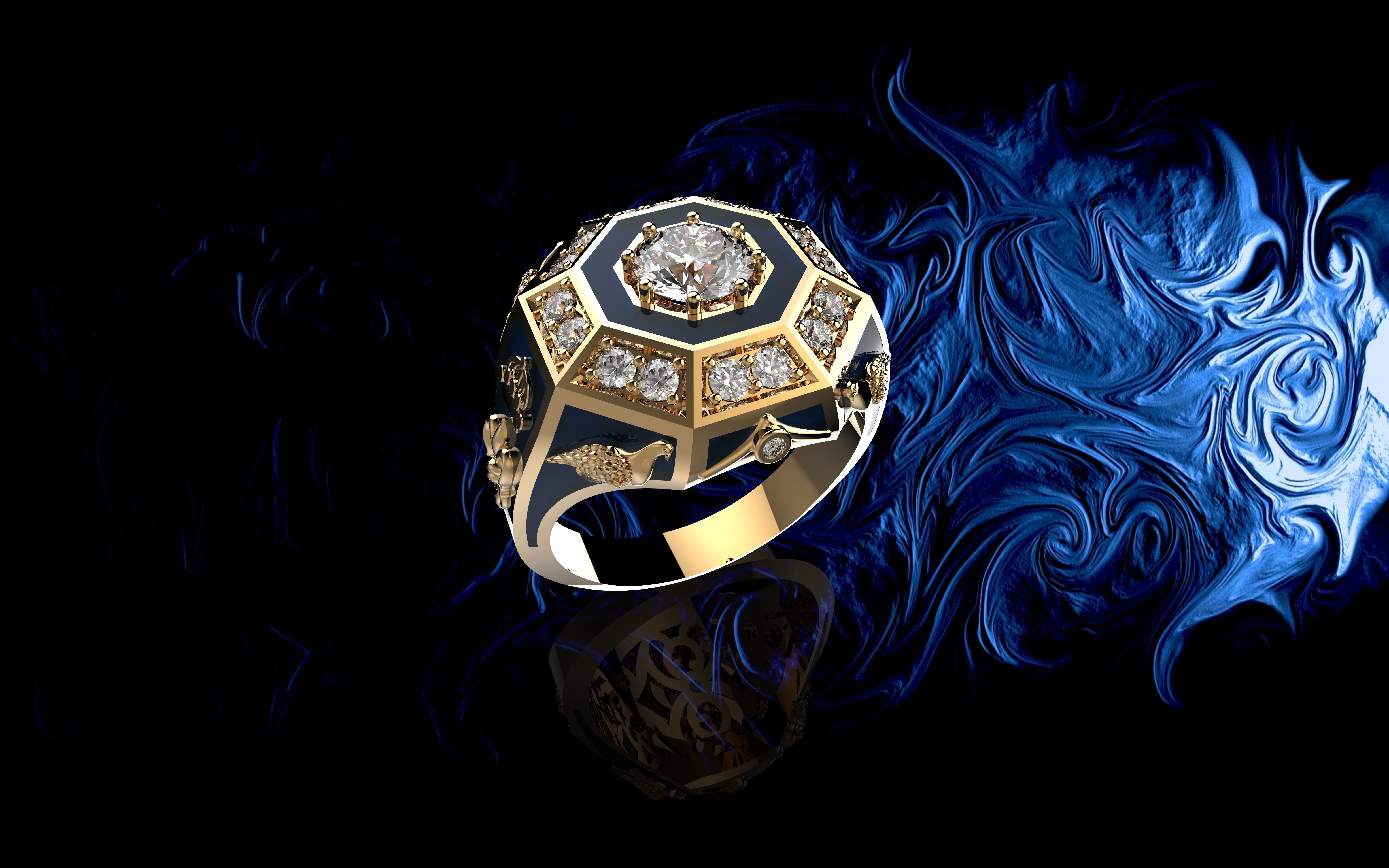 Мужские золотые кольца с бриллиантами 3D модель
