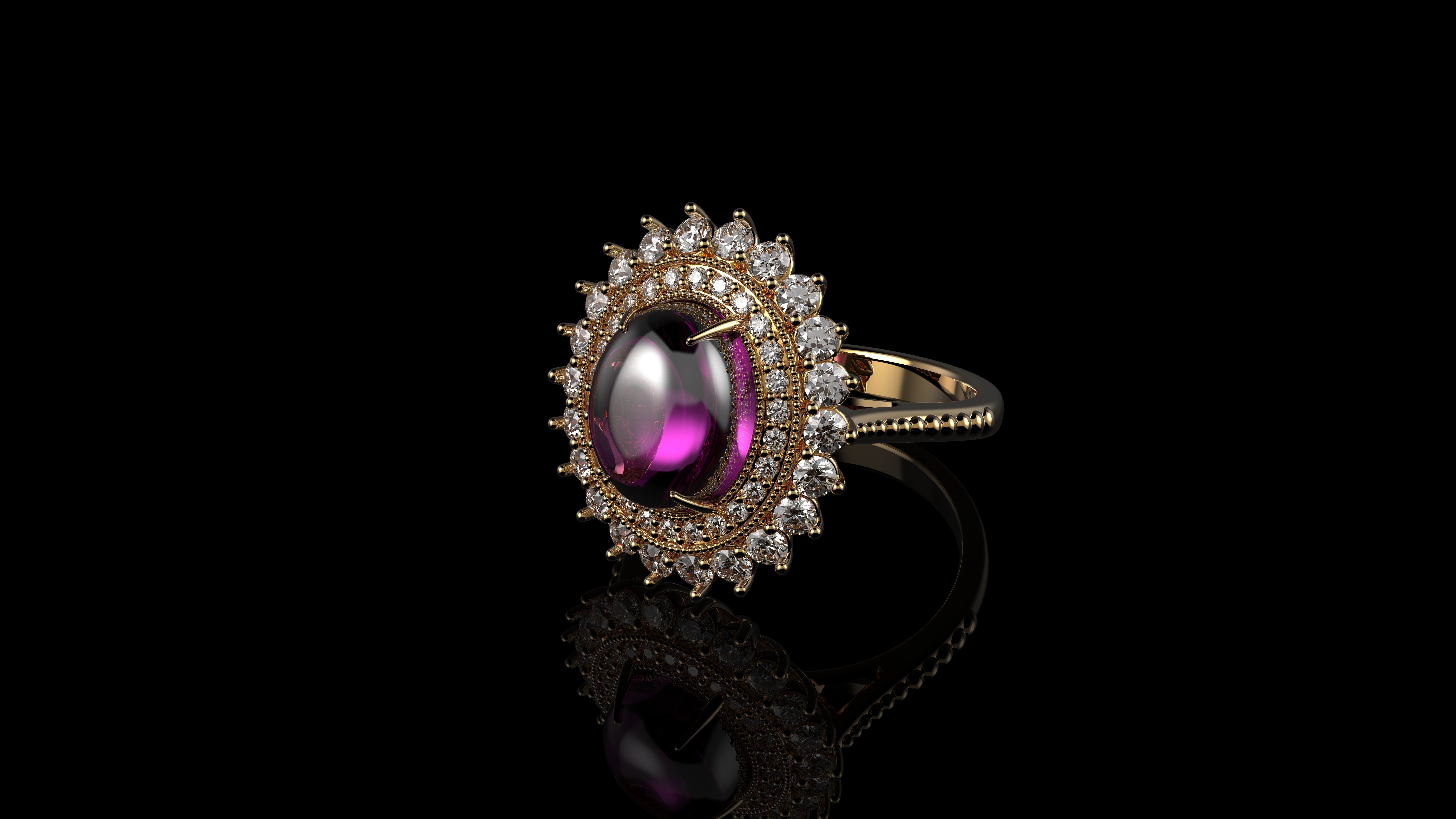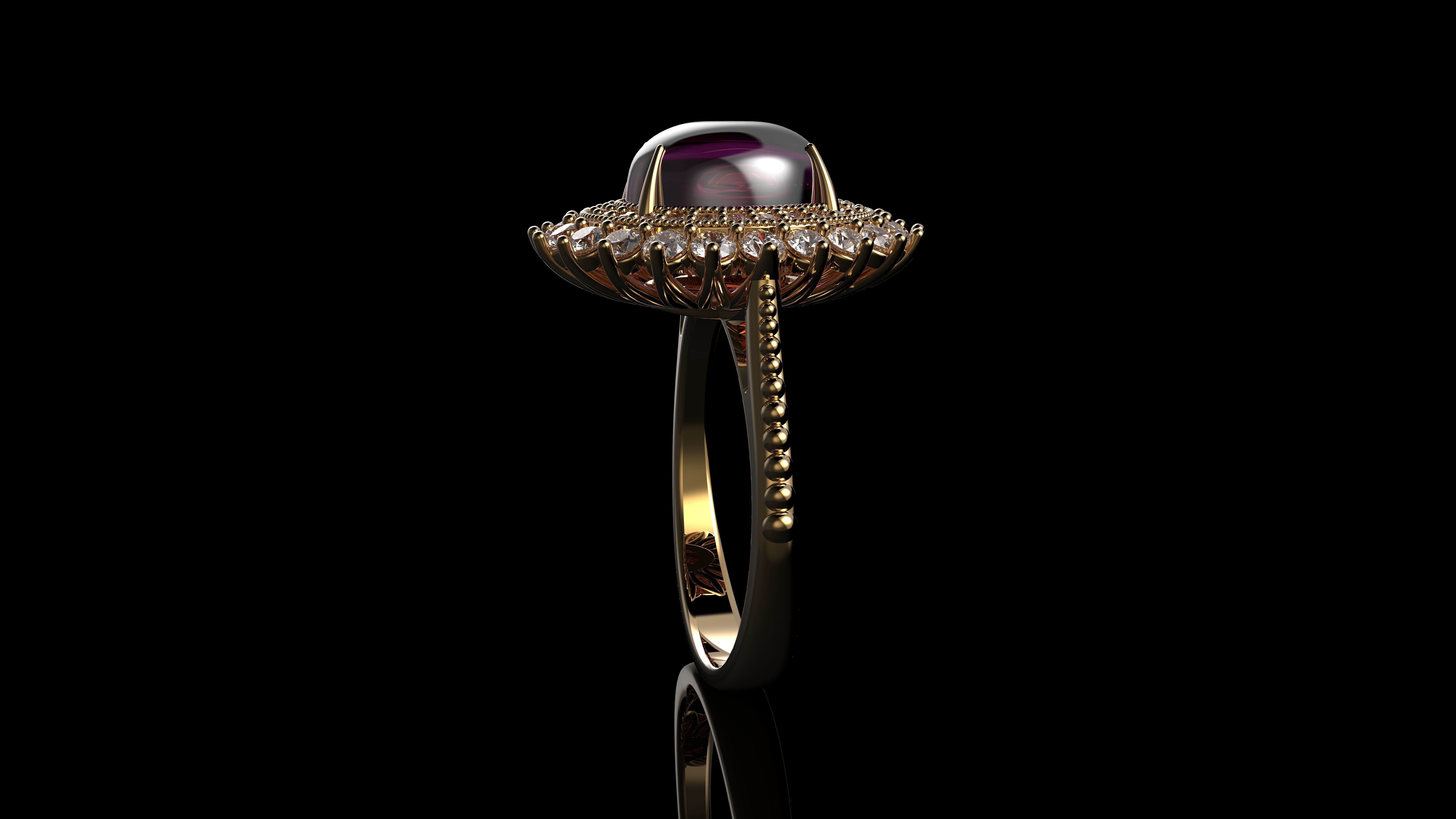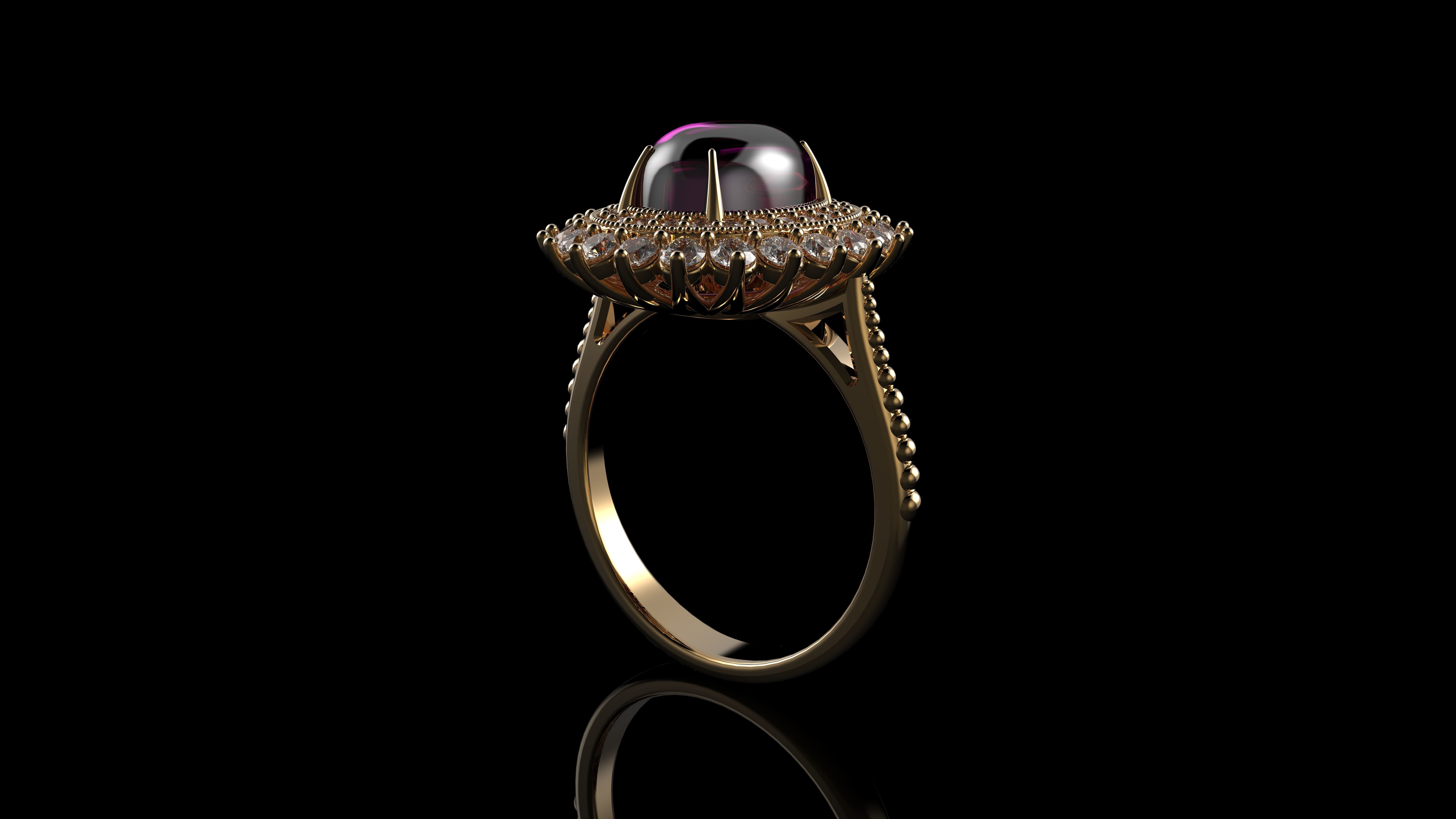 Кольцо с розовым кабошоном с сапфиром овальной огранки и бриллиантами Gemone 3D модель
