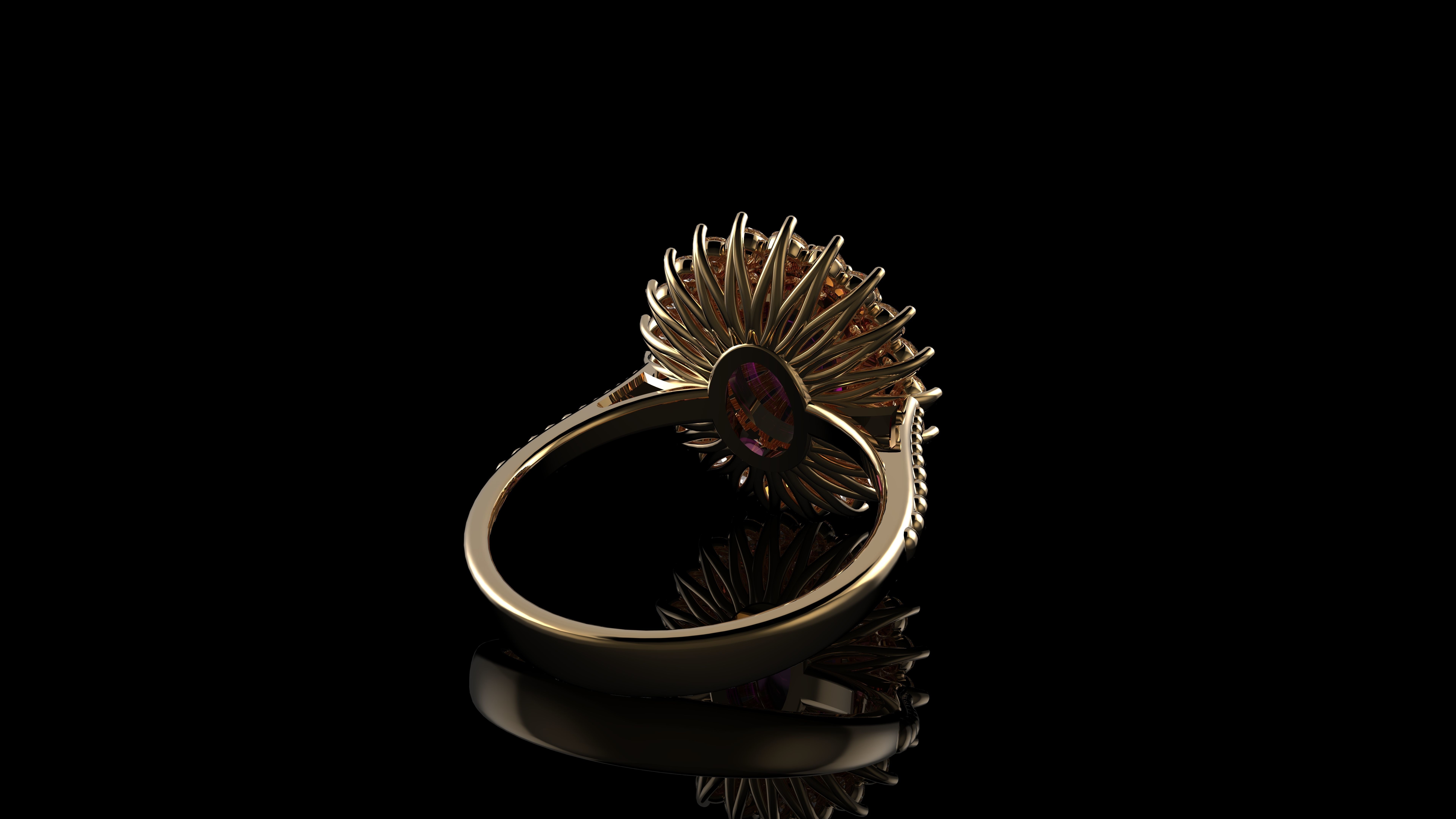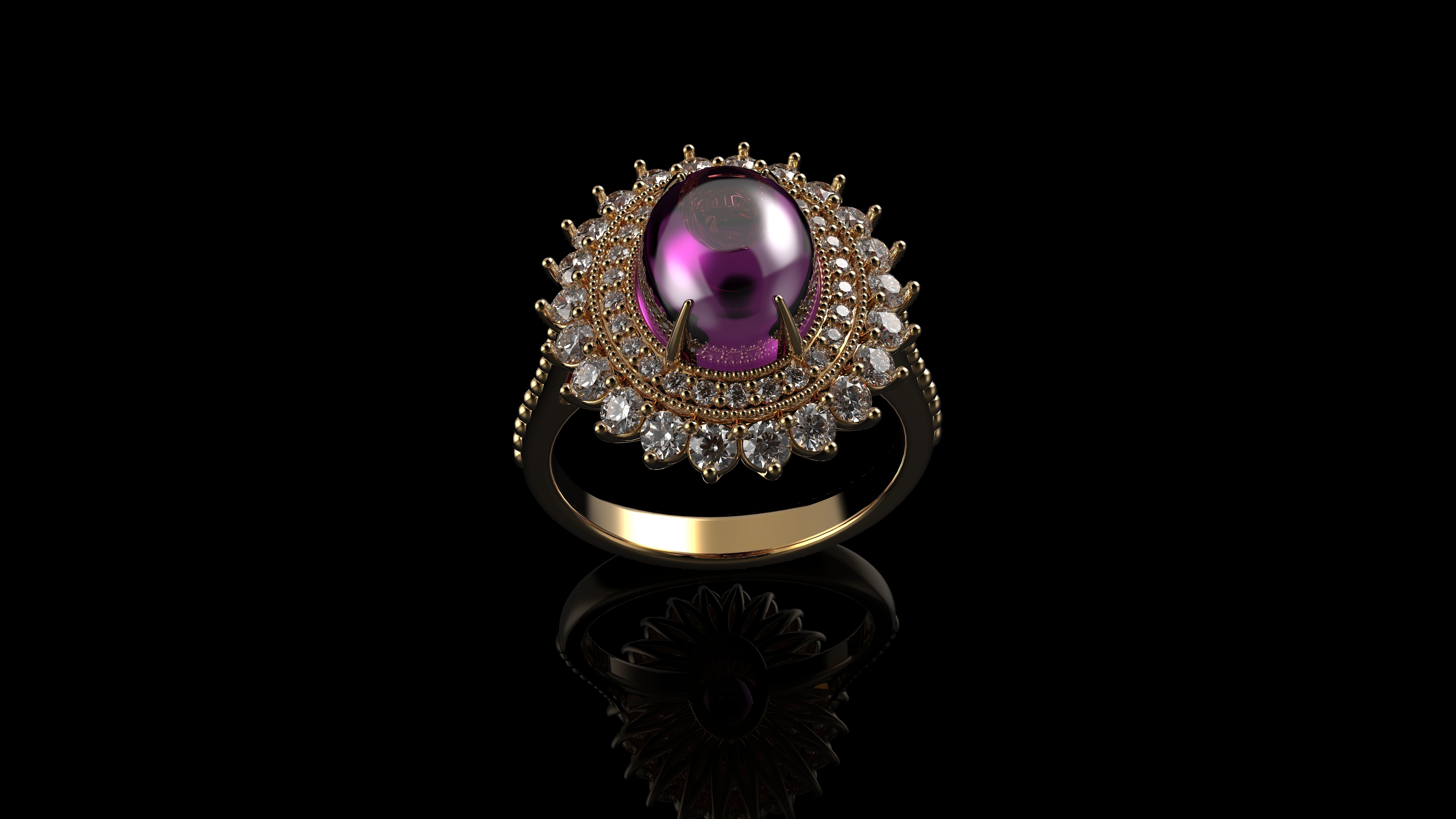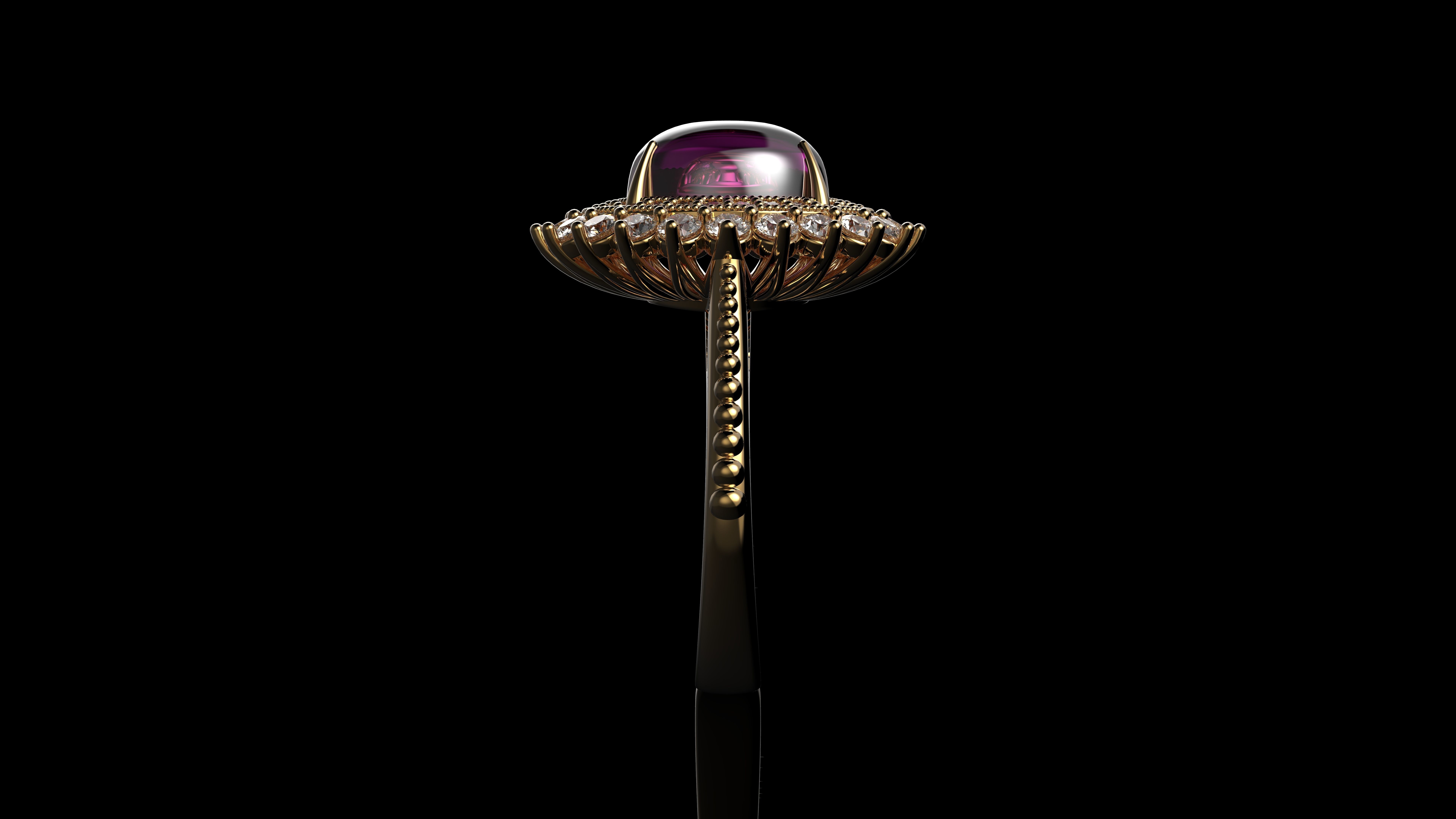 Кольцо с розовым кабошоном с сапфиром овальной огранки и бриллиантами Gemone 3D модель