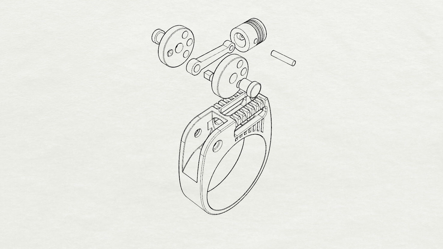 Двигатель Man Ring 3D Spiner. Кольцо с подвижными элементами. Размер - 20 мм Вес - 16,7 г (золото 585 пробы) stl