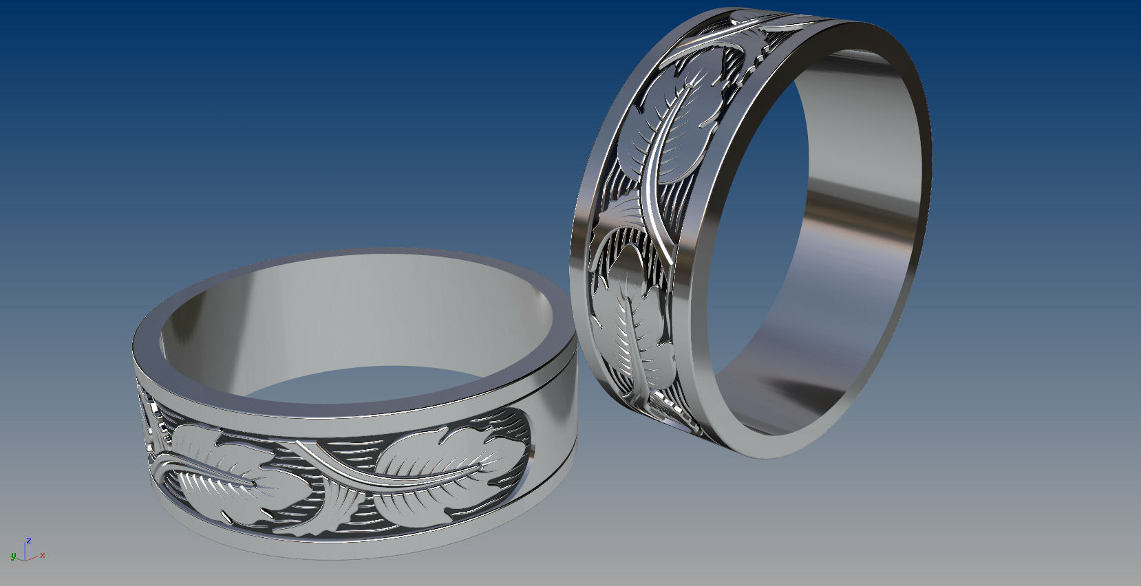 Помолвочные кольца с листьями Размеры 19.0 и 17.0 Качественное ювелирное кольцо Модель для 3D печати. Полностью детализированная модель. Модель готова к прототипированию на ЧПУ и 3D печати. Рекомендую подрасти на SolidScape или точнее 3д принтере. Оригинальная авторская работа.